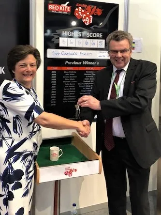 While attending the ISBA Annual Conference in Manchester this week, Mrs Wood was invited, along with all the other attendees to participate in Red Kite’s Lucky Six Competition which provides participants with the opportunity to win a free minibus for their school for a year on one throw of six dice. The winner is the player who either throws or gets closest to throwing six, sixes. By throwing an amazing 666665, which is the highest ever recorded score in the history of the competition, Mrs Wood became the Lucky Six Winner for 2019. Mrs. Wood (pictured) was presented with her prize by Red Kite, Sales Manager, Steve Newby at the close of the Event.